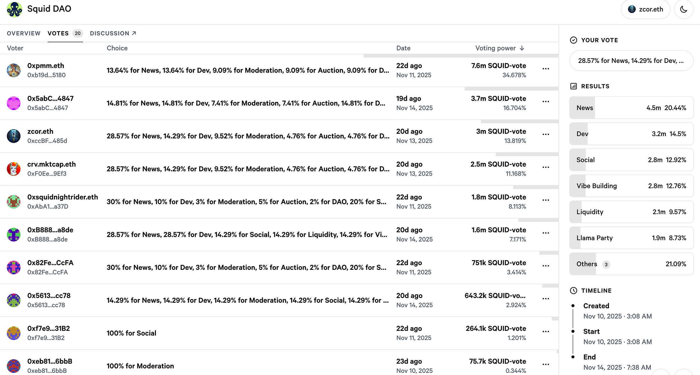 Last month simply voting in the DAO earned voters SQUID just for casting a vote. We’ll see this month if voters again choose to reward themselves for their hard work.