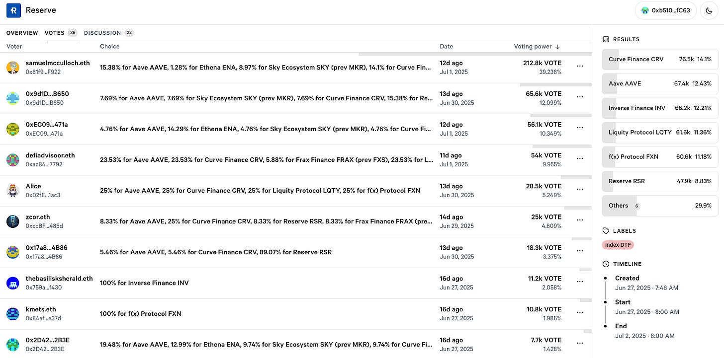 Once voting begins, all SQUID DAO members may allocate their voting weight proportionally among all allocation requests. This voting mechanism resembles the OPEN Stablecoin Index Rebalancing vote, in which users assign weights that get compiled into weightings and aggregated to a final tally.